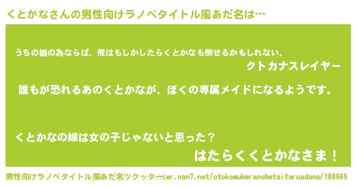 | ヘコむあだ名 | 『くとかな(爆)』『なまこ酢』 |