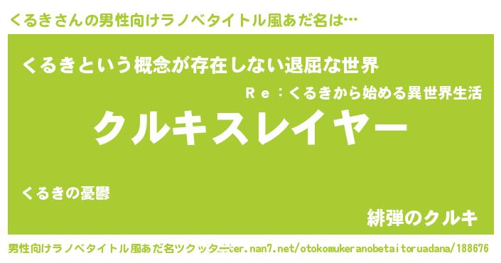 | 胡散臭い通販商品みたいなあだ名 | 『絶対に幸福をもたらす健康食品…その名も「くるき」』 |