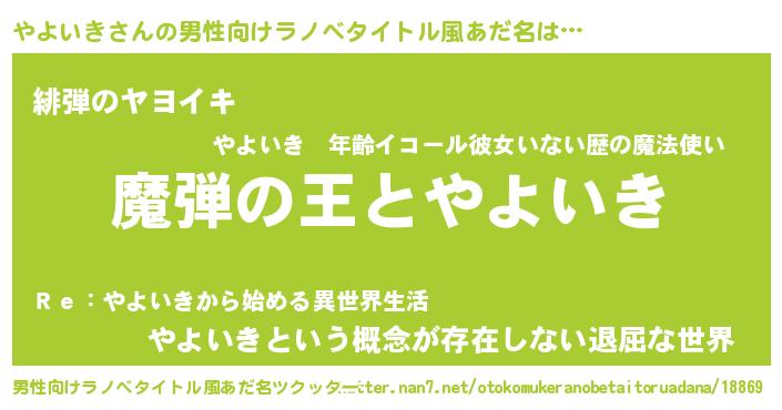 | 女子向けラノベタイトル風あだ名 | 『やよいきが死なない童話 林檎のやよいきの診療簿』 |