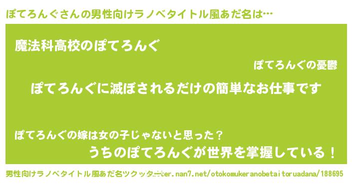 | 女子向けラノベタイトル風あだ名 | 『横柄ぽてろんぐと宰相陛下』 |