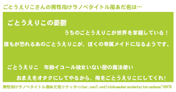 | 意味不明あだ名 | 『永久保存ごとうえりこ』 |
