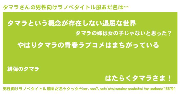 | 女子向けラノベタイトル風あだ名 | 『タマラの雑貨屋さん』 |