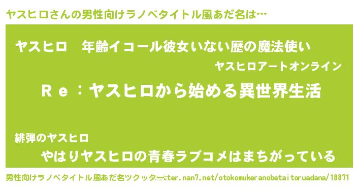 | 胡散臭い通販商品みたいなあだ名 | 『芸能人もオススメする高麗人参…その名も「ヤスヒロ」』 |