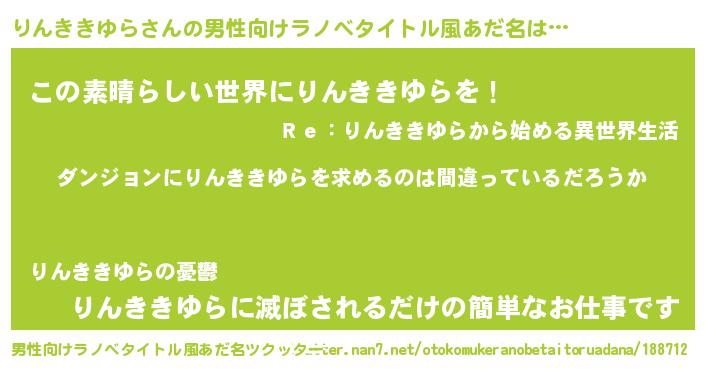 りんききゆらさんの男性向けラノベタイトル風あだ名をツクッター!