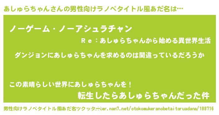| 意味不明あだ名 | 『とにかく怪しいあしゅらちゃん』 |