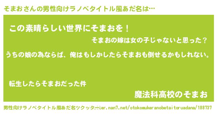 | ファンタジー風あだ名 | 『エターナルソマオー』『ヴァルソマーナ』 |