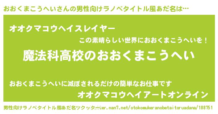 | 意味不明あだ名 | 『自称おおくまこうへい』 |