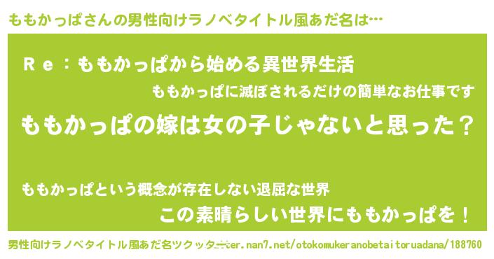 | 女子向けラノベタイトル風あだ名 | 『ももかっぱ様がみてる』 |