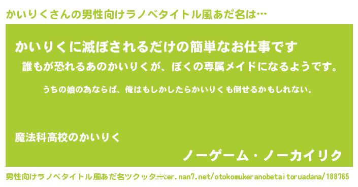 | 意味不明あだ名 | 『かいりくフォーエバー』『自称かいりく』 |