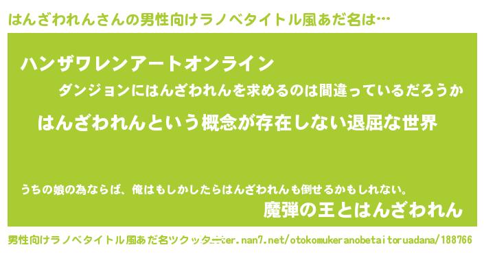 | 意味不明あだ名 | 『永久保存はんざわれん』 |
