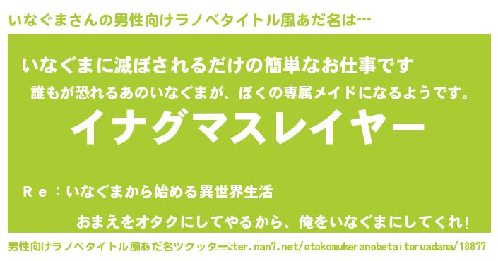 | ヘコむあだ名 | 『いなぐま(爆)』『なまこ酢』 |