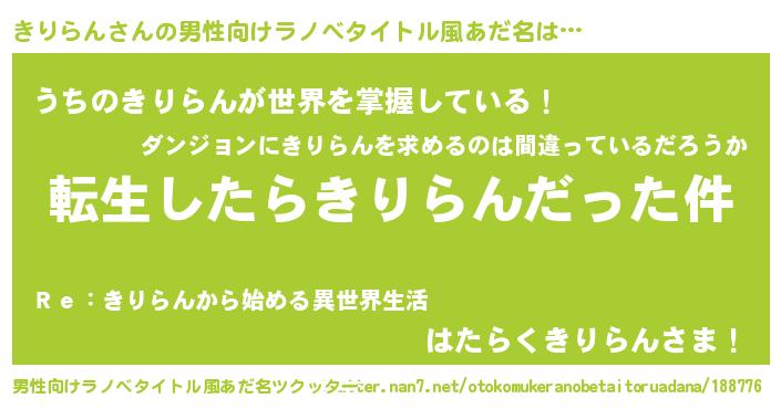 | 胡散臭い通販商品みたいなあだ名 | 『伝統あるサプリメント…その名も「きりらん」』 |