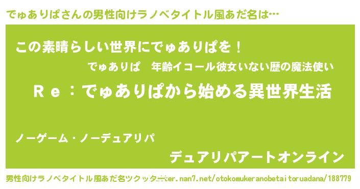 | 女子向けラノベタイトル風あだ名 | 『闇のでゅありぱ』 |