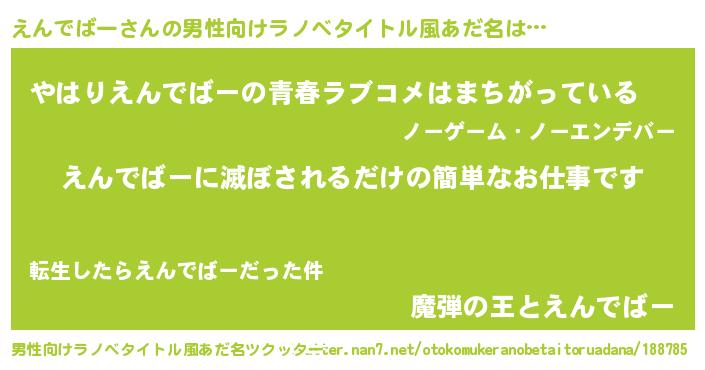 | ヘコむあだ名 | 『酢こんぶ』『えんでばー(震え声)』 |