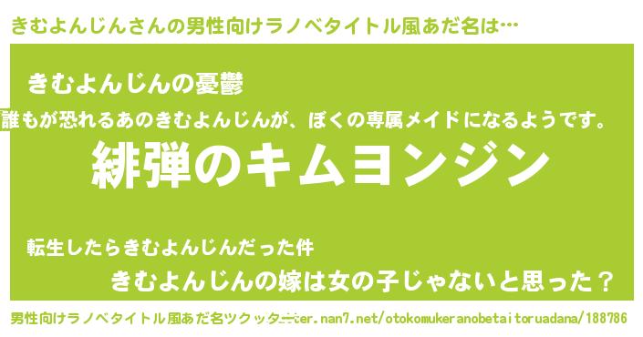 | 女子向けラノベタイトル風あだ名 | 『シンデレラきむよんじん家の靴箱館』 |
