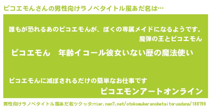 | 女子向けラノベタイトル風あだ名 | 『ピコエモんの玉の輿計画!』 |