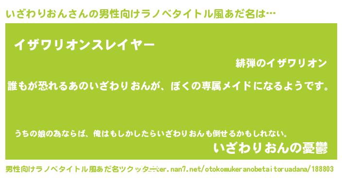 | 胡散臭い通販商品みたいなあだ名 | 『来世でも幸せになれる健康食品…その名も「いざわりおん」』 |
