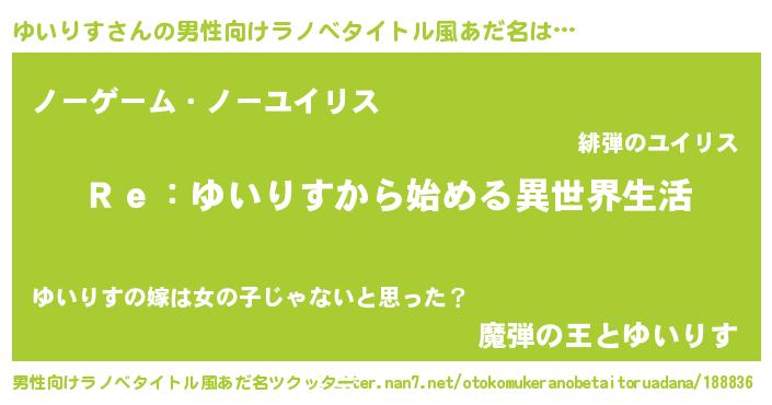 | 女子向けラノベタイトル風あだ名 | 『ゆいりすストレイドッグス』 |