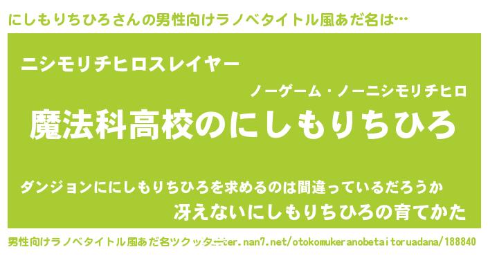 | ヒーロー風カッコイイあだ名 | 『サイバー戦士ニシモリチヒロ』 |
