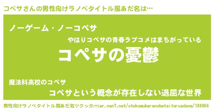 | 胡散臭い通販商品みたいなあだ名 | 『必ず成功する水晶球…その名も「コペサ」』 |