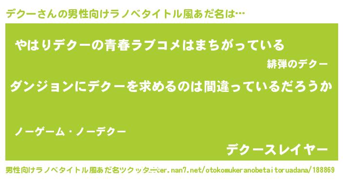 | 意味不明あだ名 | 『とにかく怪しいデクー』『自称デクー』 |