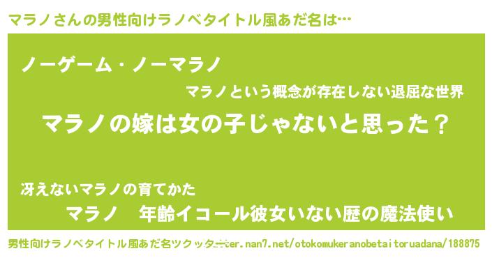 | 女子向けラノベタイトル風あだ名 | 『マラノ様がみてる』『死神マラノの再婚』 |
