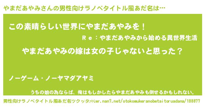 | 女子向けラノベタイトル風あだ名 | 『やまだあやみの卵を拾いまして』 |