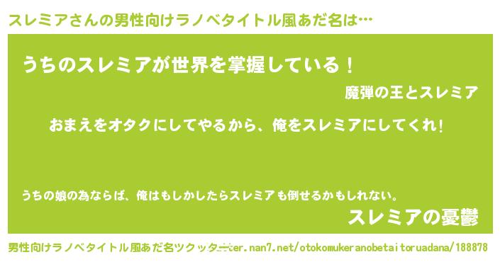 | 女子向けラノベタイトル風あだ名 | 『スレミア夫妻のなれそめ』 |
