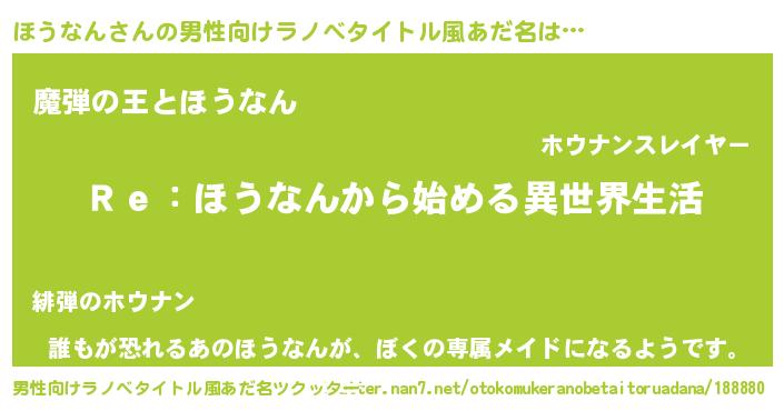 | 意味不明あだ名 | 『自称ほうなん』『永久保存ほうなん』 |