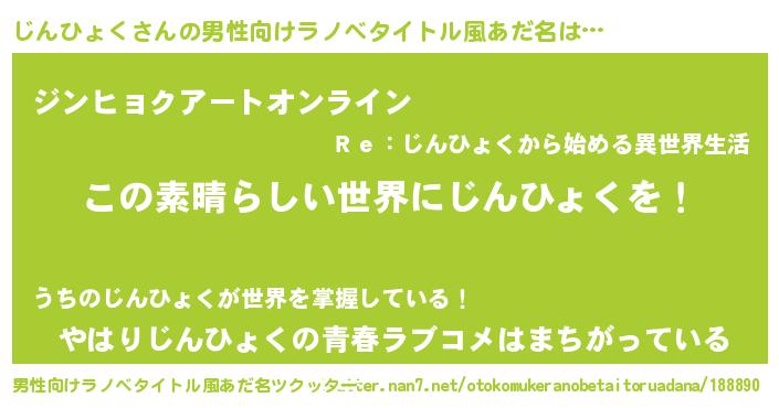 | ヒーロー風カッコイイあだ名 | 『仮面ジンダー』『スーパージンヒョク』 |