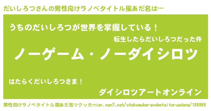 | 女子向けラノベタイトル風あだ名 | 『死神だいしろつの再婚』 |