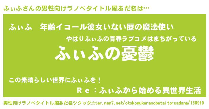 | 胡散臭い通販商品みたいなあだ名 | 『モテモテ間違いなしブレスレット…その名も「ふぃふ」』 |