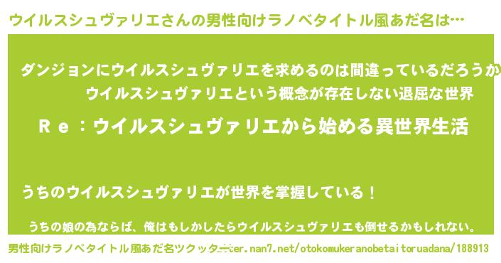 | 女子向けラノベタイトル風あだ名 | 『闇のウイルスシュヴァリエ』 |
