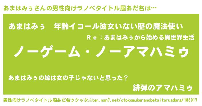 | 伝説のあだ名 | 『救世主となる占い師あまはみぅ』 |