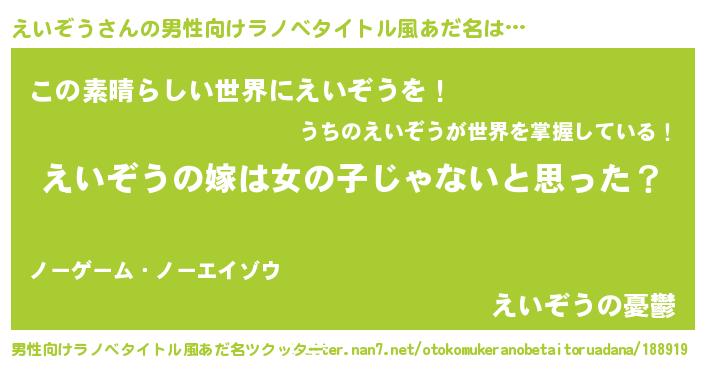 | 意味不明あだ名 | 『とにかく怪しいえいぞう』 |
