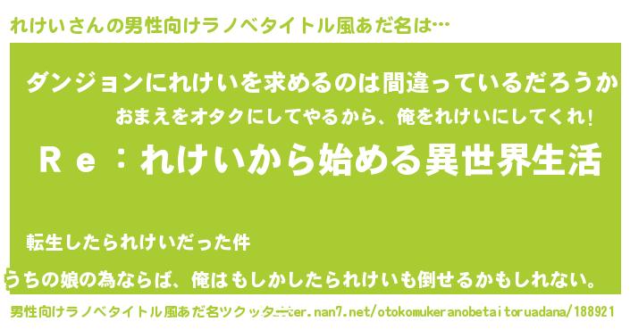 | 意味不明あだ名 | 『自称れけい』『とにかく怪しいれけい』 |