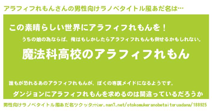 | 女子向けラノベタイトル風あだ名 | 『アラフィフれもんアンティーク』 |