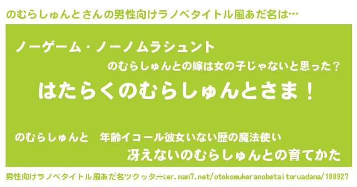 | 胡散臭い通販商品みたいなあだ名 | 『100人中100人が認めたマグネット磁石…その名も「のむらしゅんと」』 |
