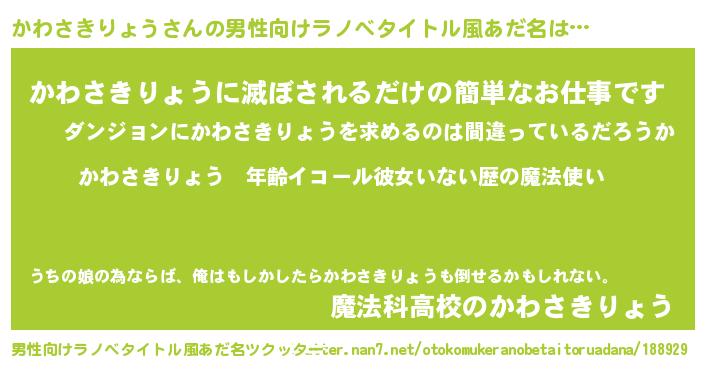 | 肩書あだ名 | 『かわさきりょう上級大将』 |