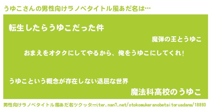| ヘコむあだ名 | 『うゆこ(笑)』『なまこ酢』『うゆを』 |