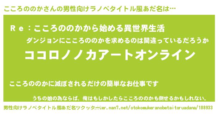 | 胡散臭い通販商品みたいなあだ名 | 『億万長者になれる水晶球…その名も「こころののか」』 |