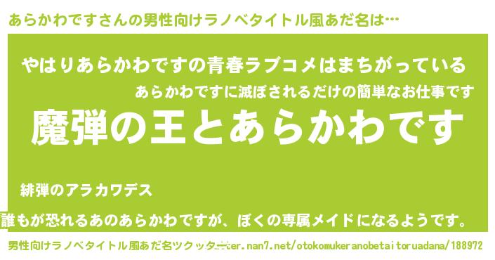| 意味不明あだ名 | 『住所不定無職あらかわです(77歳)』 |