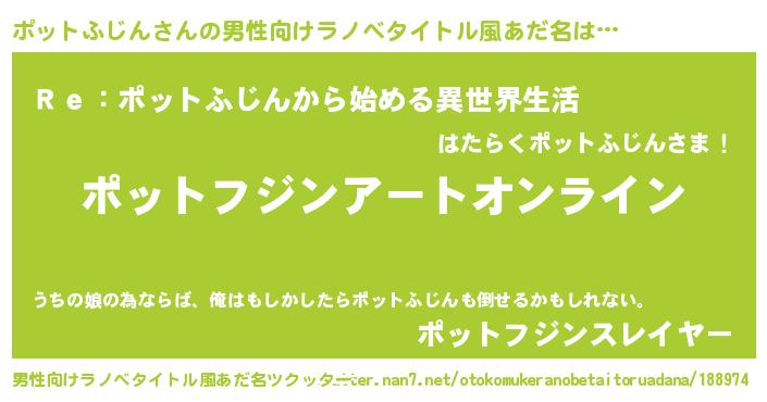 | ヒーロー風カッコイイあだ名 | 『スーパーポットフジン』『仮面ポッダー』 |