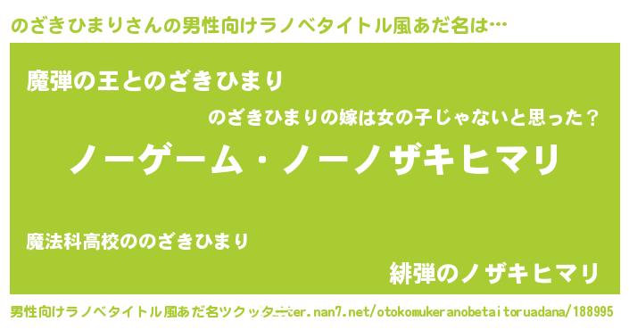 | 女子向けラノベタイトル風あだ名 | 『死神のざきひまりの再婚』 |