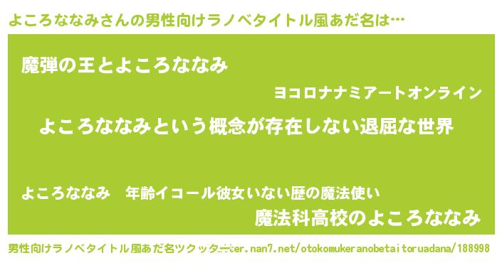 | 胡散臭い通販商品みたいなあだ名 | 『絶対に幸福をもたらす水素水…その名も「よころななみ」』 |