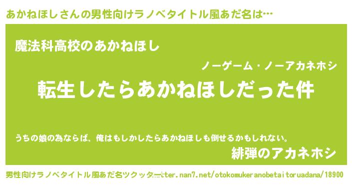 | 胡散臭い通販商品みたいなあだ名 | 『テレビで話題のアガリクス…その名も「あかねほし」』 |