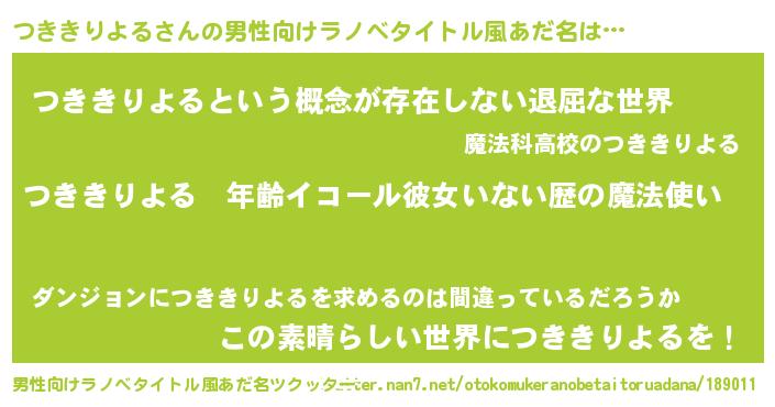 | 女子向けラノベタイトル風あだ名 | 『つききりよるの玉の輿計画!』 |