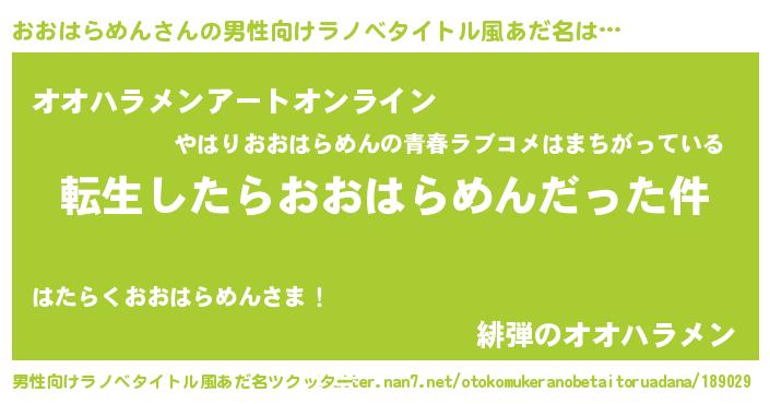 | 胡散臭い通販商品みたいなあだ名 | 『モテモテ間違いなし霊験あらたかなお札…その名も「おおはらめん」』 |