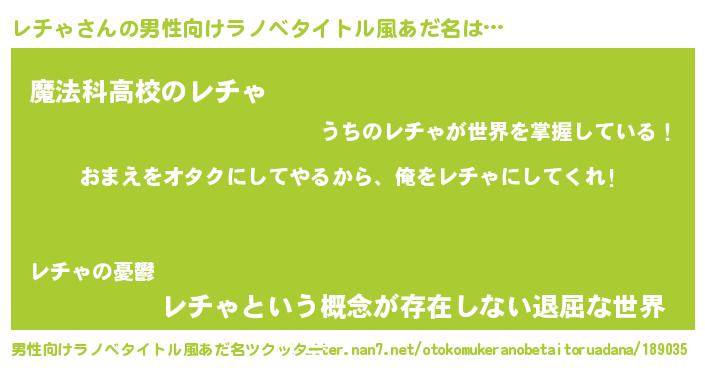 | ヒーロー風カッコイイあだ名 | 『友情の使者レチゃ』『最強戦士レチャ』 |
