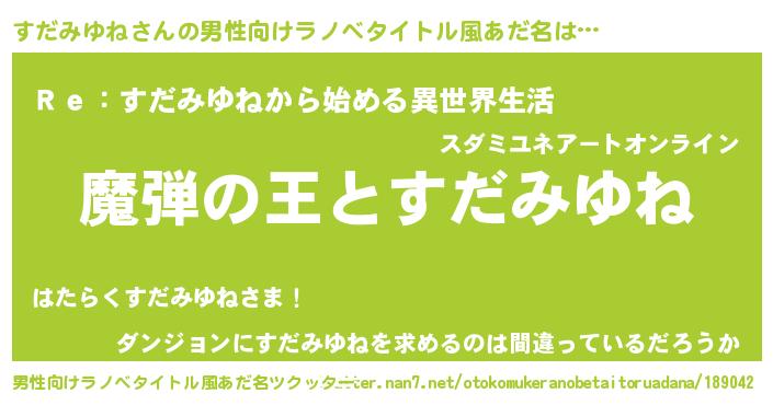 | 意味不明あだ名 | 『住所不定無職すだみゆね(6歳)』 |